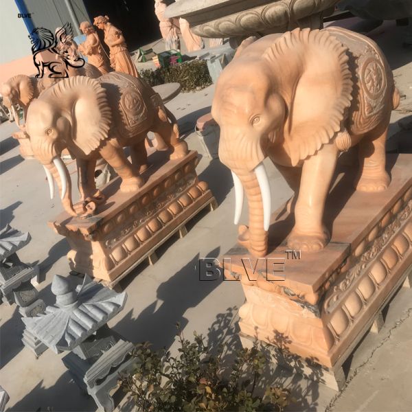 BLVE Natural Stone Marble Life Size Elephant Statue Sunset Red Chinese Fengshui Animal Sculpture Garden Decoration Images |